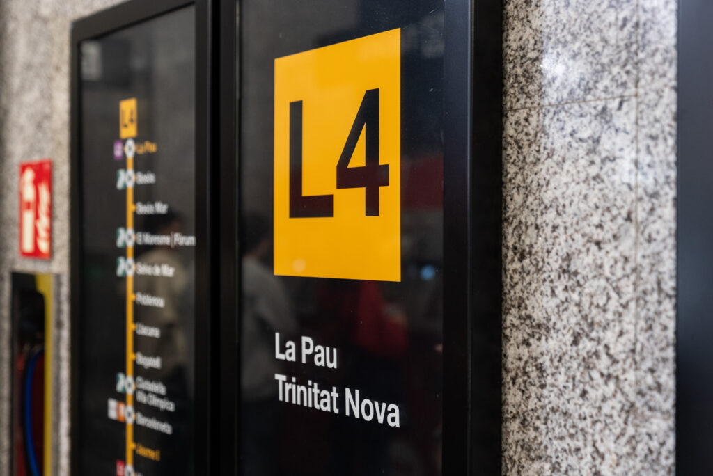 - Panell informatiu amb el recorregut de l’L4 del metro