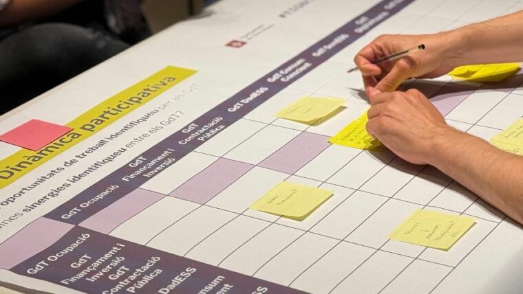 Mònica Colomer, coordinadora de La Confederació, que forma part de l’Estratègia com a entitat i també en alguns grups de treball, com Ocupació, Contractació Pública o SomESS, va destacar el valor del format: “Hem exposat els reptes dels GdT i hem buscat sinergies entre grups per impulsar accions conjuntes”. També Sara Borrella, de la cooperativa Colectic, va valorar la dinàmica positivament: “Encara que no participo directament a cap grup de l’Estratègia, m’ha agradat molt per conèixer la feina que estan fent els diferents grups i aprofundir en propostes de millora i sinergies compartides.”