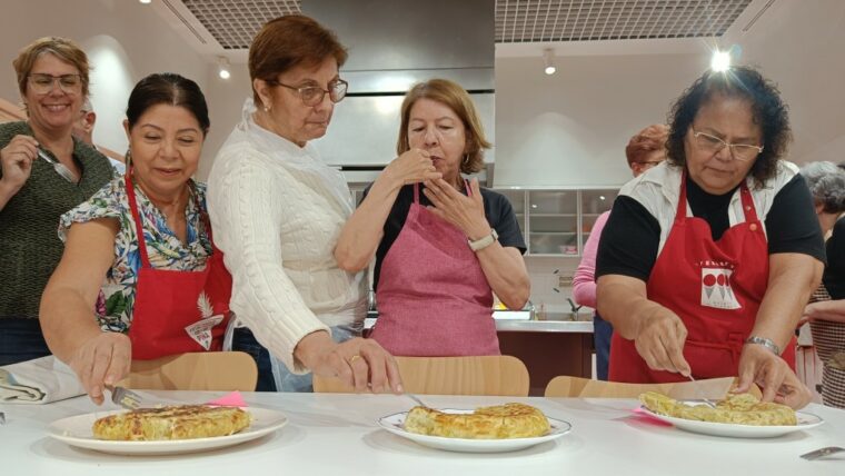 Però si hi ha una activitat emblemàtica, és la “Cuina oberta”, que avui està en marxa. Generalment, hi participen persones jubilades, però també n’hi ha d’altres edats que s’hi han acostat per motius ben diversos i hi han arribat per camins ben diferents. La Iliana, per exemple, va conèixer la iniciativa a través de la seva professora de català i busca un espai on practicar la llengua. A més, hi ha trobat “un espai on es respira molt d’afecte i on aprenc i em distrec amb la resta de persones”, explica. Flora Alba, per la seva banda, va entrar-hi després de veure un cartell pel carrer poques setmanes després d’haver arribat a Barcelona des de Colòmbia i, ara que ja fa dos mesos que hi participa, n’està encantada: “He fet amistats i aprenc moltes coses tant de la cuina i de la cultura d’aquí com del dia a dia del barri on visc”.
