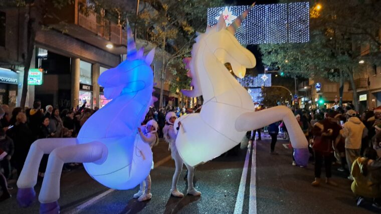 Activitat itinerant pel barri de dos unicorns de llum amb so