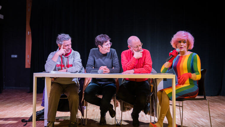 Posteriormente, el Ateneu el Poblet ha sido el escenario de una mesa redonda sobre la importancia de esta reivindicación para el colectivo LGTBI, moderada por Brigitta Lamoure y donde han participado Pau Gálvez, del Frente de Liberación Gay de Cataluña, Maria Giralt, de Gayles TV y Jordi Petit, presidente honorífico de la Coordinadora.