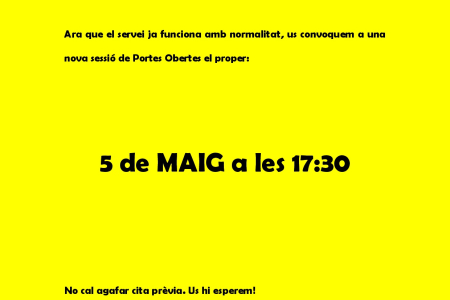 Ara que el servei ja funciona amb normalitat, us convoquem a una nova sessió de Portes Obertes el proper: