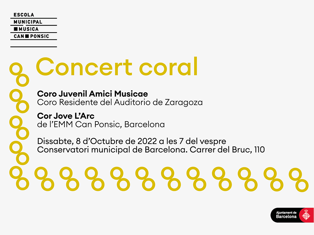 El proper dissabte 8 d'octubre el Cor Jove de l'escola i el Cor juvenil Amici Musicae de Saragossa faran un concert conjunt a les 7 del vespre al Conservatori Municipal de Música de Barcelona (C/ Bruc 110).