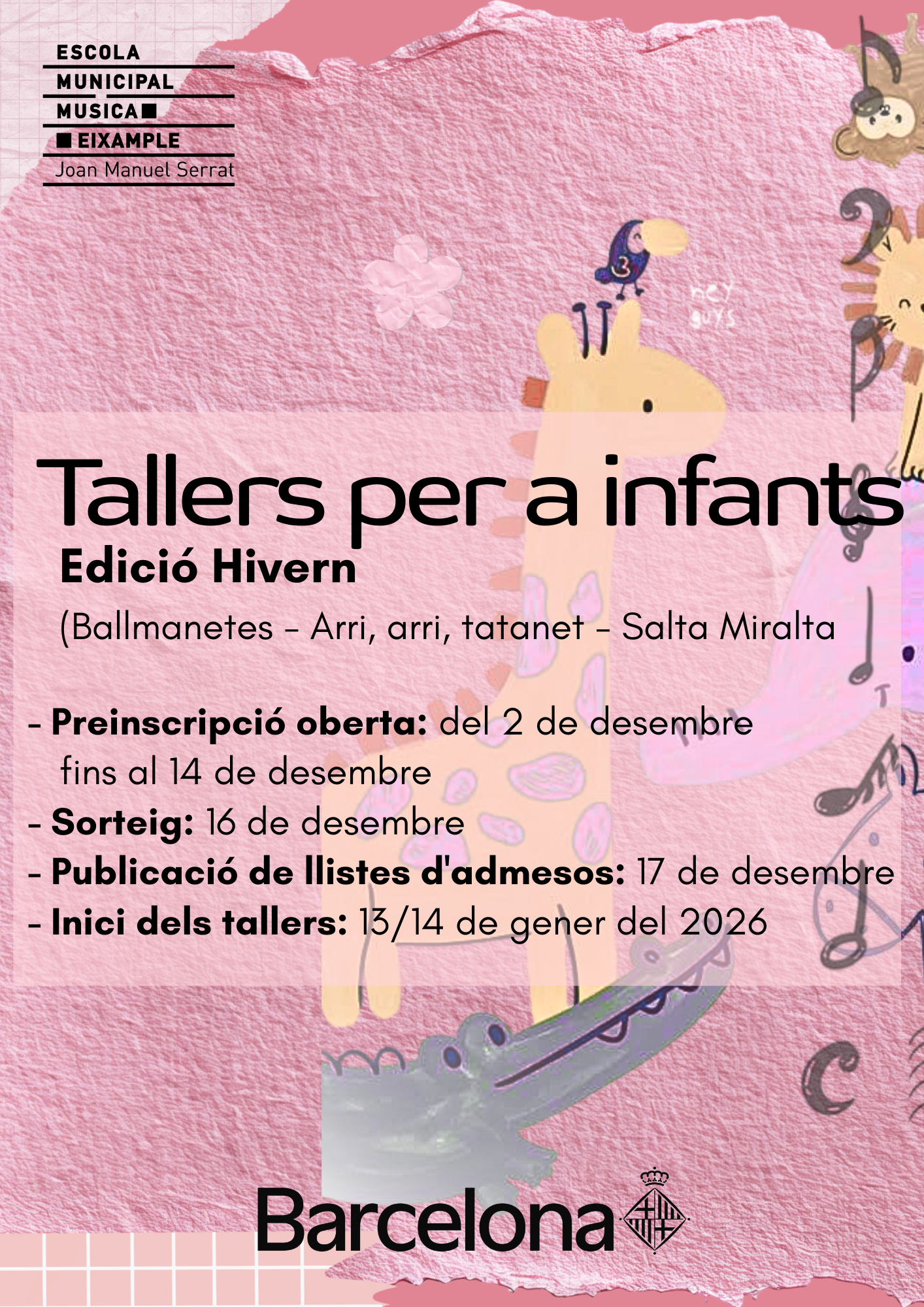 La música incideix d’una manera natural en els aspectes motors, cognitius i emocionals dels infants. A través del repertori de cançons, jocs de falda i de la manipulació d’instruments (petita percussió i joguines de so) que es proposen en aquests tallers, els infants reben una estimulació afectiva única a través de la veu i en contacte amb els seus referents més pròxims.