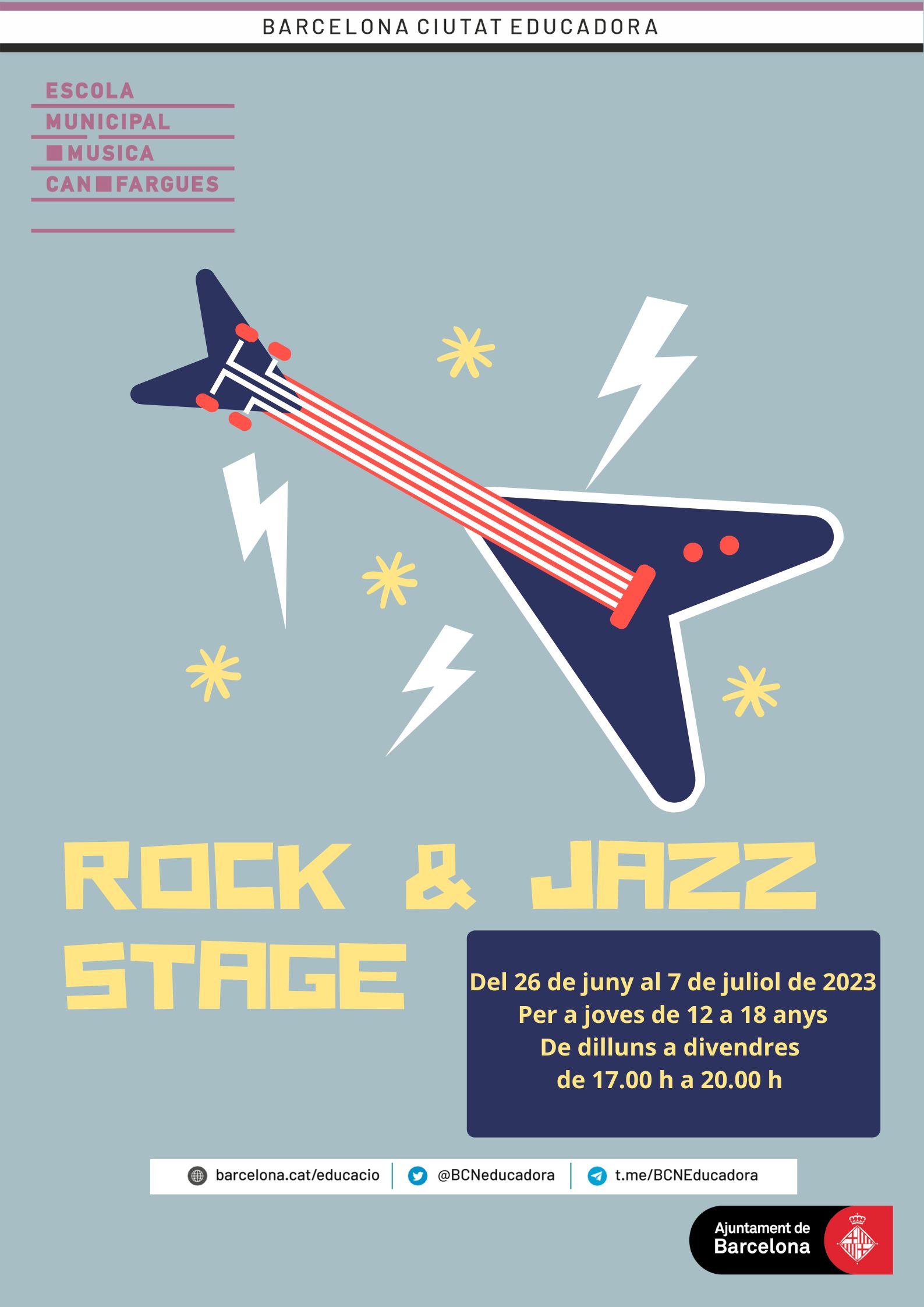 Apúntate a CAN FARGUES JAZZ en ROCK STAGE que tendrá lugar en el EMM Can Fargues las dos primeras semanas de julio. En este stage aprenderemos y profundizaremos en la interpretación de la música moderna a través de un repertorio transversal.