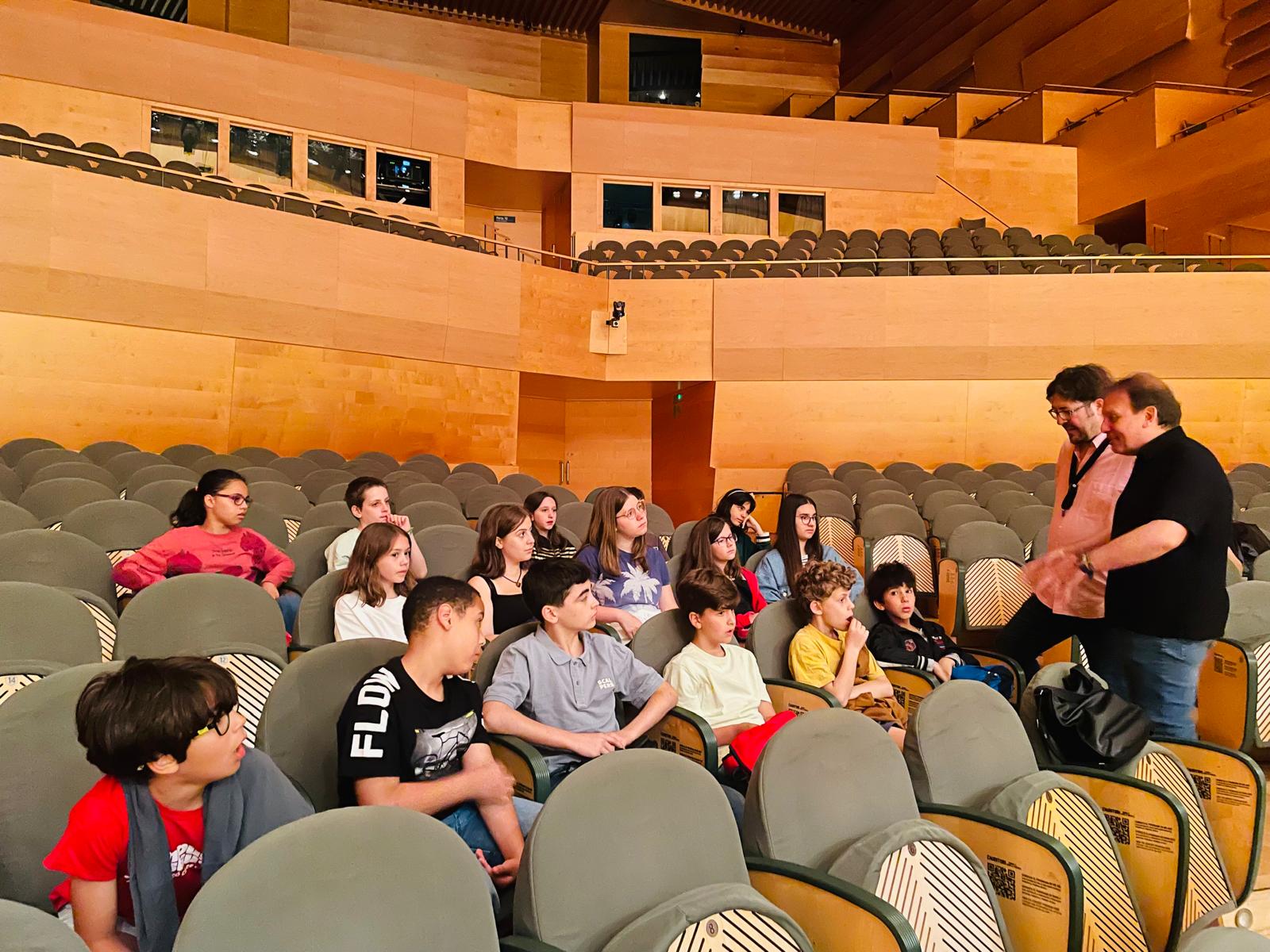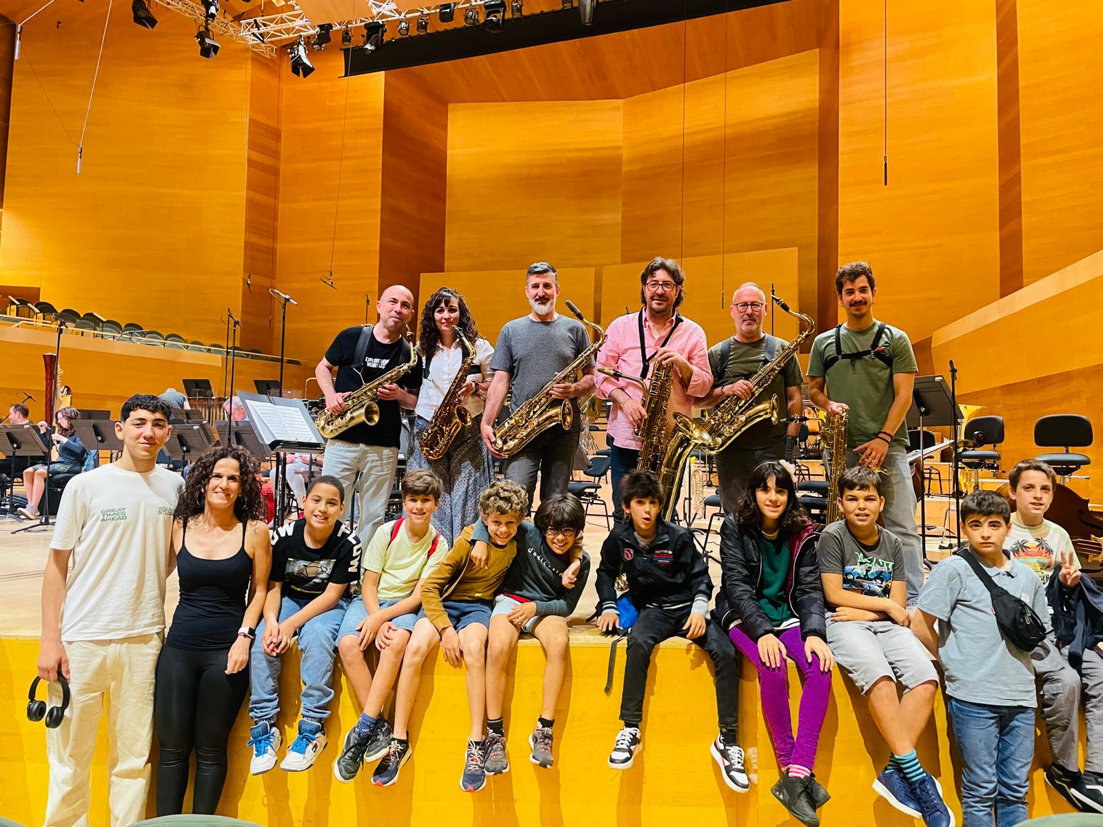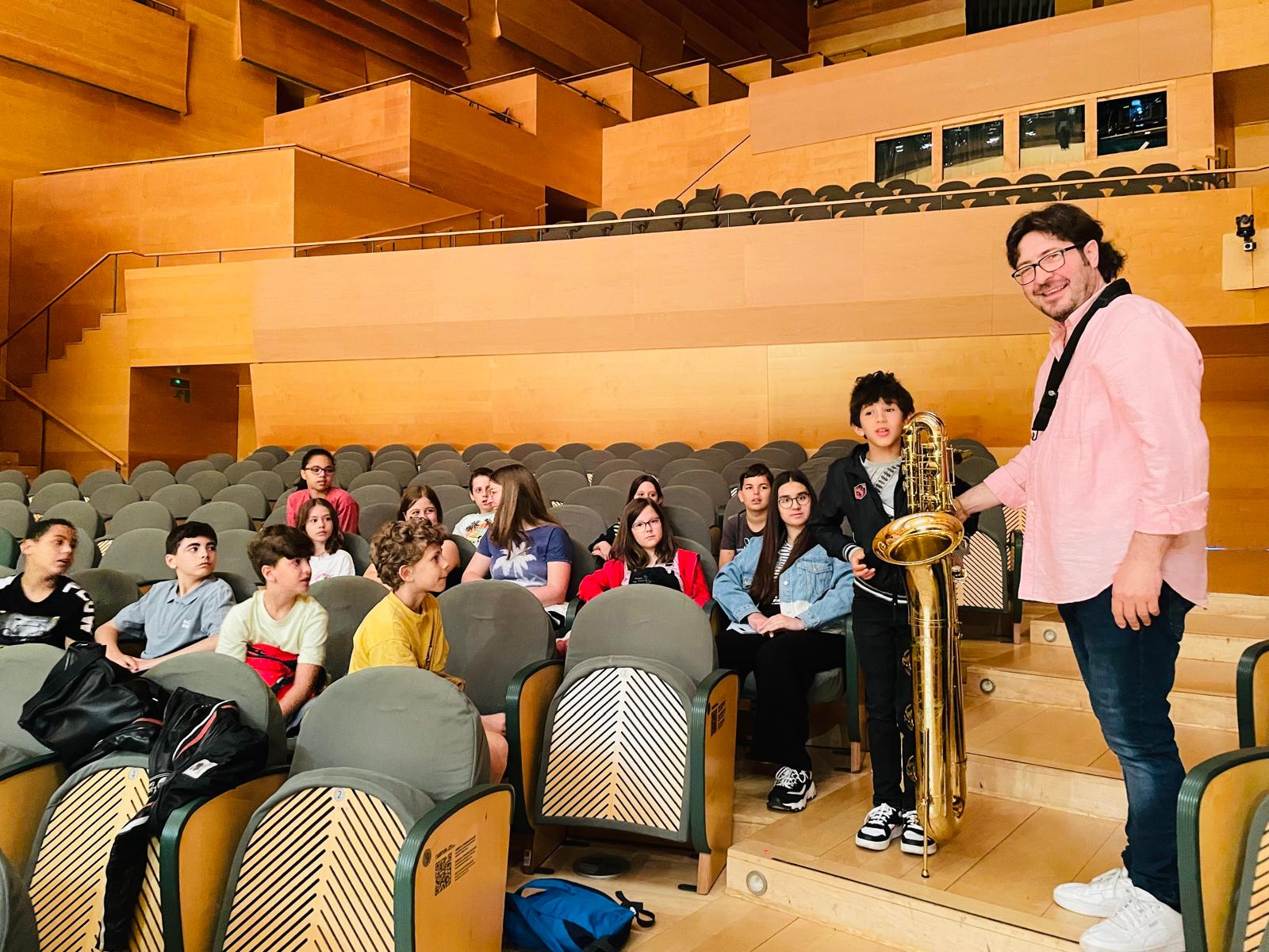 Alumnos de saxo de la EMM Nou Barris asisten al ensayo general de la Banda Municipal de Barcelona.