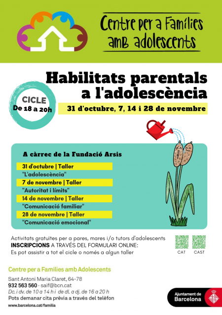 Para conocer con más detalle los contenidos y fechas de las actividades podéis consultar nuestra web: http://ajuntament.barcelona.cat/familia/ca/activitats-centre-families