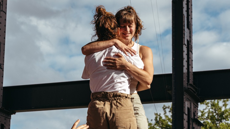 Con un título que, más o menos, significa Abrazos y apretones de manos , este espectáculo al aire libre reúne cinco acróbatas que interactúan con el público. Cada dúo, cada coreografía de grupo toma como punto de partida, como bien dice el título, un apretón de manos, una palmada en la espalda, un abrazo. Empezarán por aquí y acabarán haciendo las acrobacias más espectaculares.