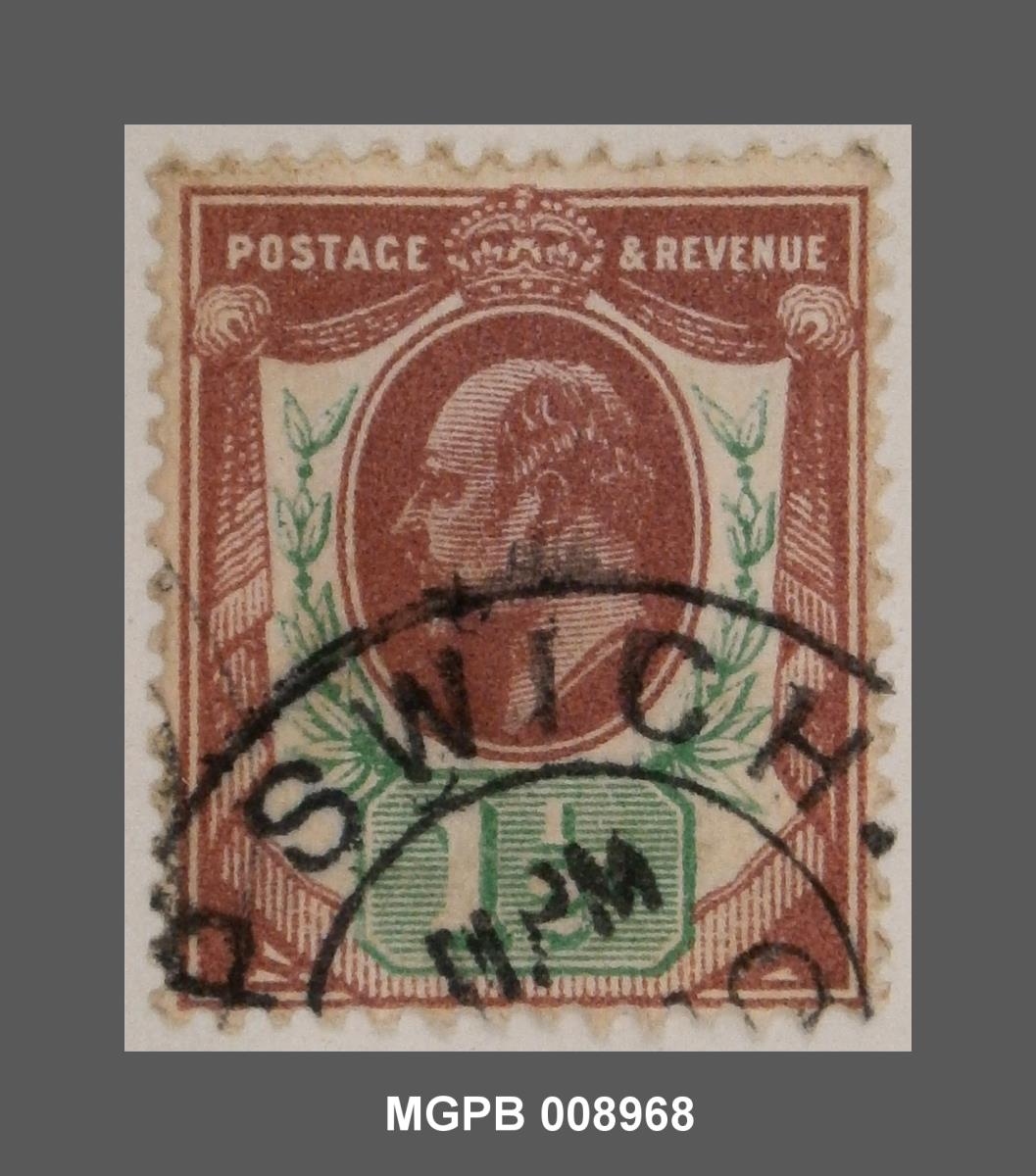 POSTAGE / & REVENUE / 1 1/2 D PSWICH[...] / MPM / [...]0 |