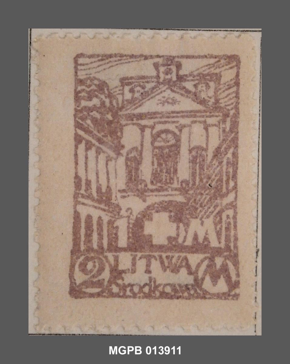 Tipus de segell emès en benefici de la Creu Blanca, pertanyent al període d'ocupació polonesa de la regió lituana de Vílnius i de la proclamació de la República de Lituània Central, segons consta en la catalogació del full d'àlbum i en la bibliografia consultada. Després de la Primera Guerra Mundial, les recentment independitzades repúbliques de Polònia i Lituània van entrar en conflicte per la sobirania de la regió sud-est de Lituània, que Polònia reclamava com a part del seu antic territori. Arran d'aquest conflicte, Polònia va ocupar la regió, proclamant la República autònoma de Lituània Central