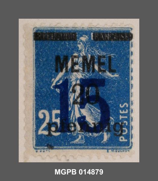 Tipus de segell de França de 1900 sobrecarregat l'any 1920 amb un altre valor per a ser posat en circulació al Territori de Memel, en lituà Klaipèda, durant el període d'administració del Consell d'Ambaixadors establert pel Tractat de Versalles (1919). Aquest consell va administrar aquest territori sota la protecció de tropes franceses entre 1920 i 1923, fins que la l'anomenada Revolta de Klaipèda (1923) va suposar l'annexió de facto d'aquesta regió per part de Lituània. Posteriorment, l'any 1921 aquest segell tornar a ser reemès amb una sobrecàrrega que modificava el seu valor.
