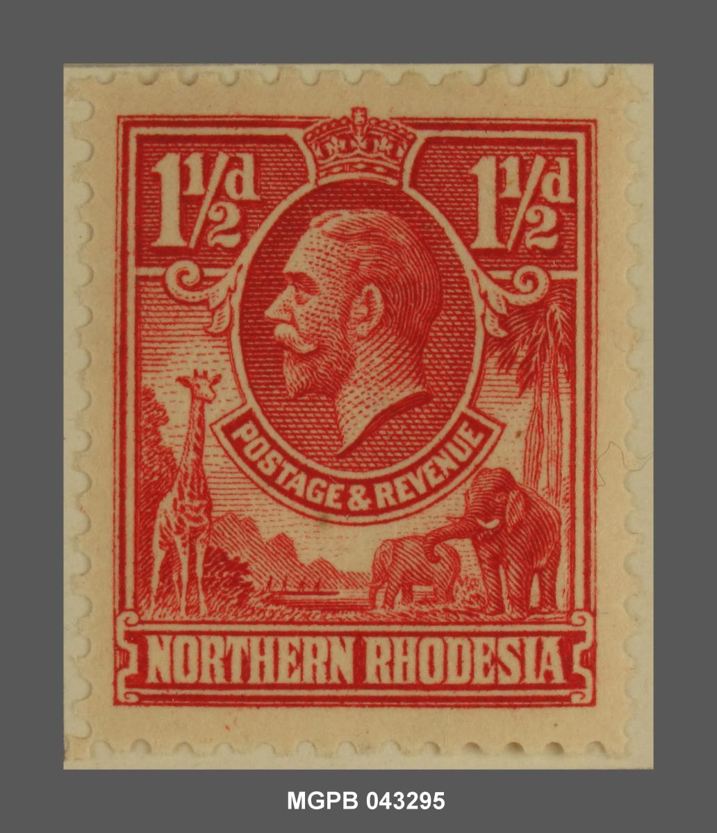 Tipus de segell emès per a ser posat en circulació a la colònia de l'imperi Britànic de Rhodèsia del Nord. Aquest territori va assolir la seva independència l'any 1964, moment en el qual va passar a constituir l'actual República de Zàmbia.