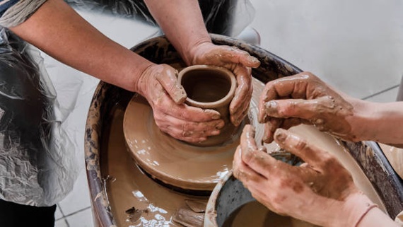 Activitat creativa per a infants de 4 a 10 anys on experimenten amb pintura i fang per fomentar la seva motricitat fina i expressió personal.