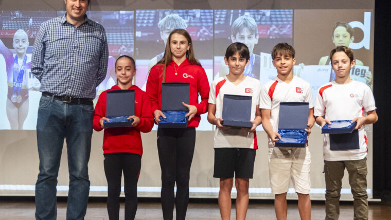 12. Les gimnastes del Club Esportiu La Salle Gràcia Ania Fernández de Via Olímpica 7 per la medalla d’or, Siena Palasí de Via Olímpica 9 per la seva medalla de bronze i Laia García de Via Olímpica 1 per la seva medalla d’or.