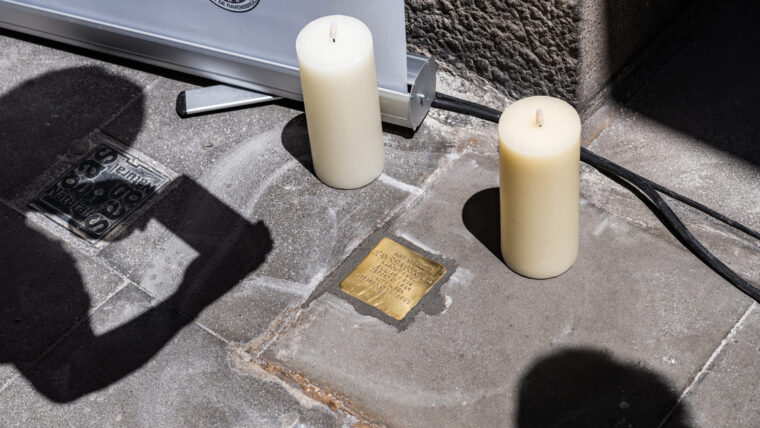 Las ‘stolpersteine’ son pequeños monumentos creados por el artista Günter Demnig en memoria de las víctimas del nazismo. Se trata de adoquines dorados que tienen inscritos los nombres y diversos datos de los represaliados y que se colocan en el suelo, delante de la casa donde vivieron. En la actualidad, hay más de 70.000 adoquines de este tipo en una veintena de países.