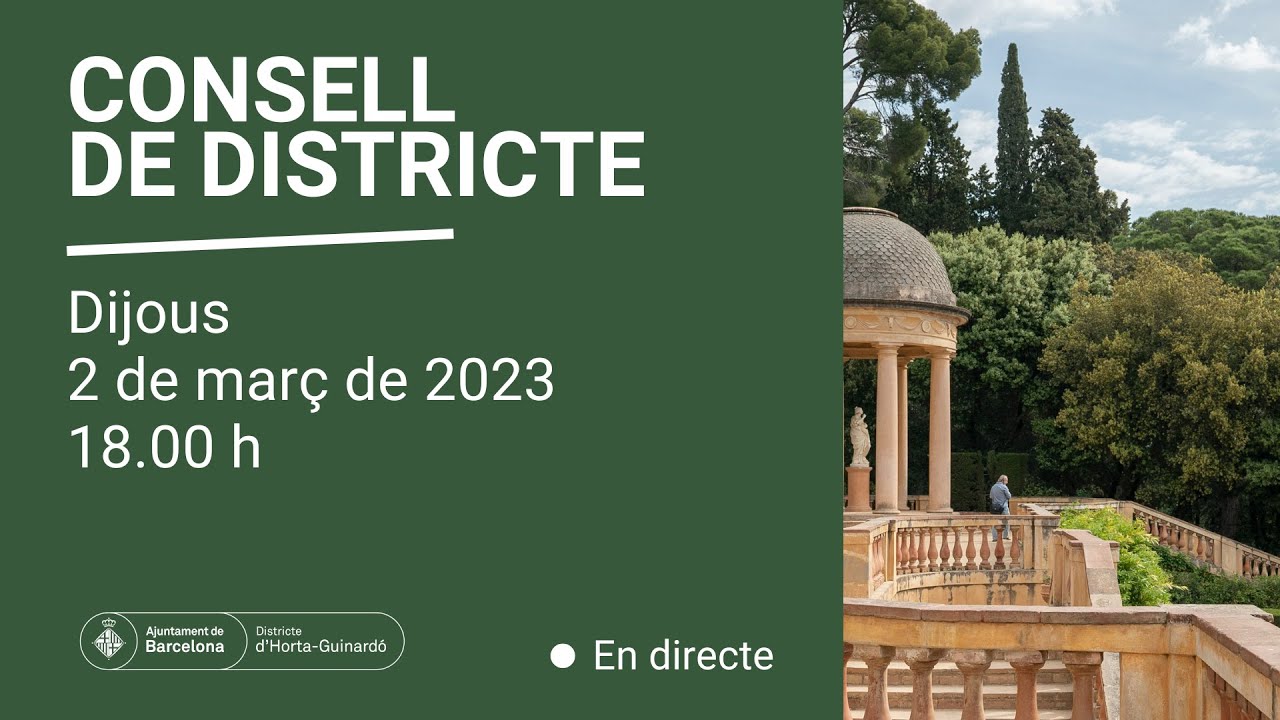 Ordre del dia (PDF 478.52 KB) Acords (PDF 126.9 KB) Acta (PDF 137.26 KB) Cartell convocatòria Consell de Districte (PDF 53.93 KB)Consell de Districte 2 de març de 2023. Sessió ordinària. Març.