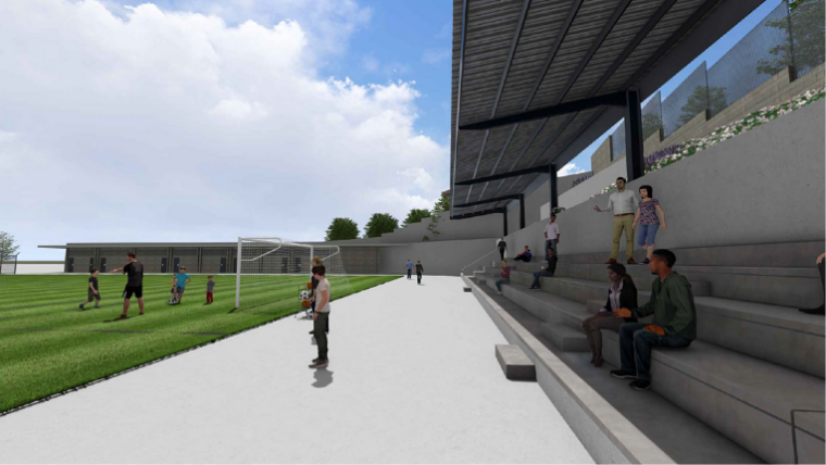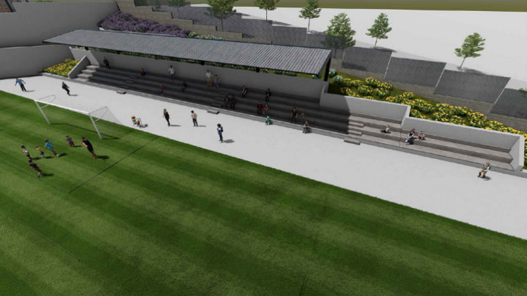 El 2026, s’iniciaran els treballs per ampliar les grades i per construir-hi una pèrgola que donarà protecció solar i ombra a la graderia i contribuirà a reduir el soroll que es transmet a l’exterior de la instal·lació. Per dur-ho a terme, està previst establir-hi murs de contenció i fer-hi tasques de compactació i redistribució de la terra.