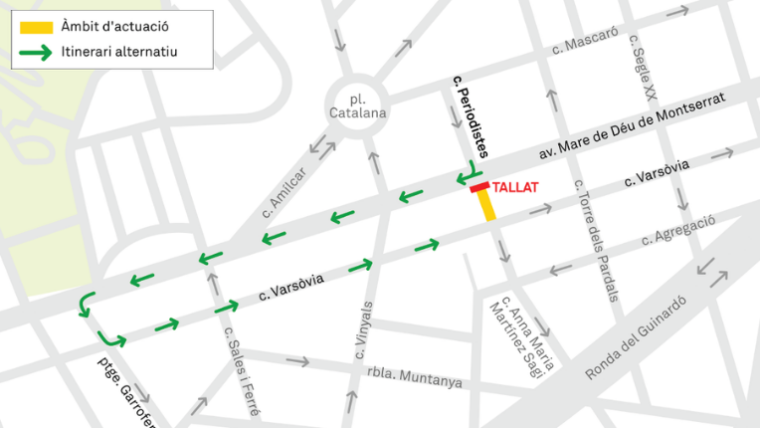Mentre durin els treballs s’habilitarà un itinerari alternatiu, que podeu consultar al plànol adjunt.