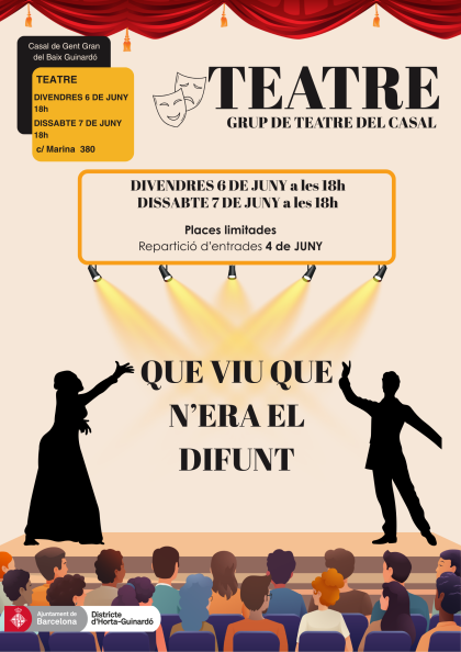 Aquest dissabte 7 hi ha sessió de TEATRE: "Que viu que n'era el difunt".