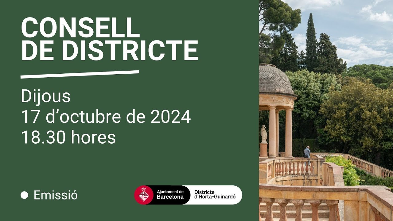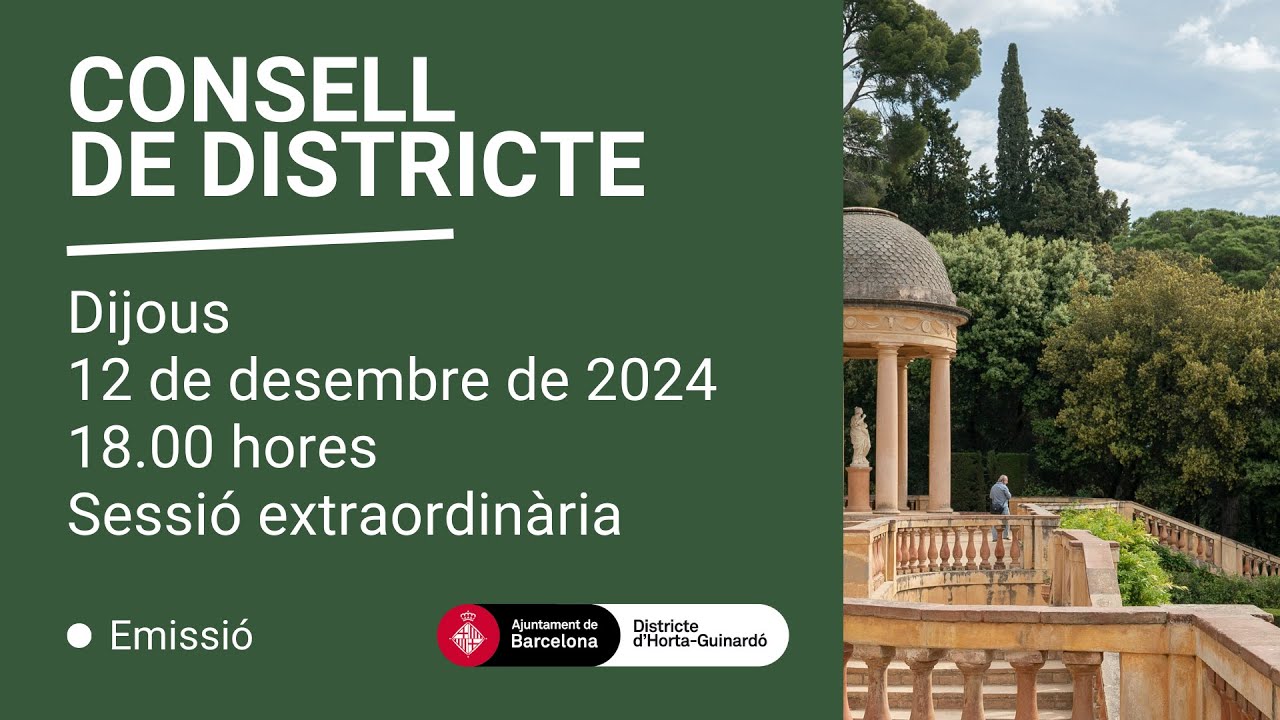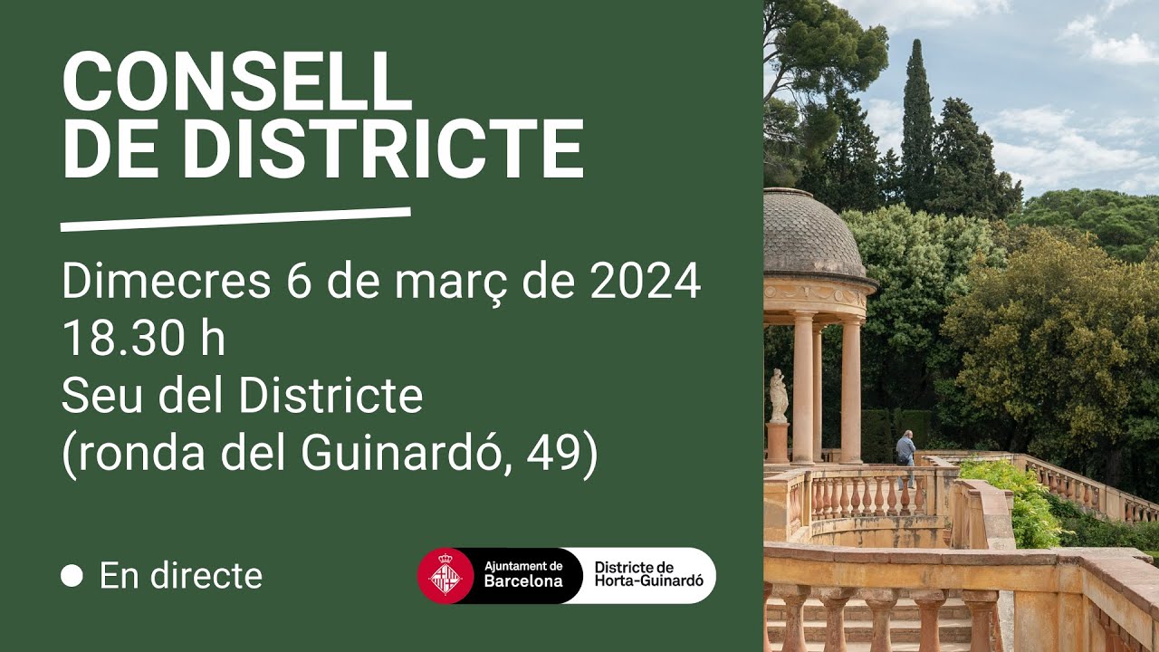 Orden del día (PDF 633 KB) Acuerdos (PDF 155.22 KB) Acta (PDF 191.77 KB) Cartel convocatoria Consejo de Distrito (PDF 185.19 KB) Intervenciones en el Consejo de Distrito (PDF 143.54 KB) Informe del estado de la ciudad y la acción de gobierno Horta-Guinardó 2023-2024 (PDF 1.7 MB)Consejo de Distrito 24 de julio de 2024. Sesión ordinaria. Julio.