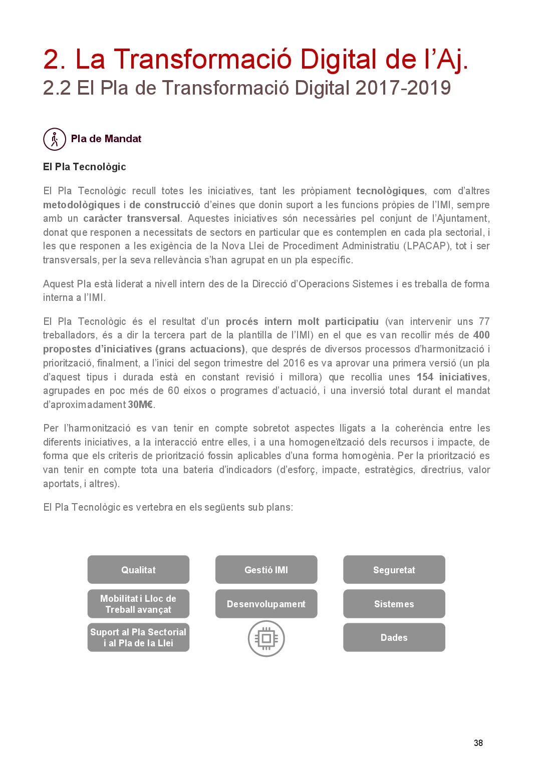 Memòria 2016 Memòria 2016 L'Institut Municipal d'Informatica L'IMI com a principal proveïdor de solucions TIC L'estructura organitzativa La gestió de serveis TIC en dades El pressupost La Transformació Digital de l'Ajuntament El Pla Barcelona Digital 2017 - 2020 El Pla de Transformació Digital 2017 - 2019 L'activitat Els projectes sectorials Gerència Municipal Gerència de Drets de ciutadania, Participació i Transparència Gerència d'Ecologia, Urbanisme i Mobilitat Gerència de Presidència i Economia Gerència de Drets Socials Gerència de Recursos Gerència de Seguretat i Prevenció Cooperació Internacional Esdeveniments i delegacions Projectes europeus Els projectes i serveis transversals de l'IMI Telecomunicacions i Infraestructures Operacions i Seguretat Qualitat i Seguretat Desenvolupament Informació de Base i Cartografia Representació TIC i Reconeixements / 99 Image Image Image Image Image Image Image Image Image Image Image Image Image Image Image Image Image Image Image Image Image Image Image Image Image Image Image Image Image Image Image Image Image Image Image Image