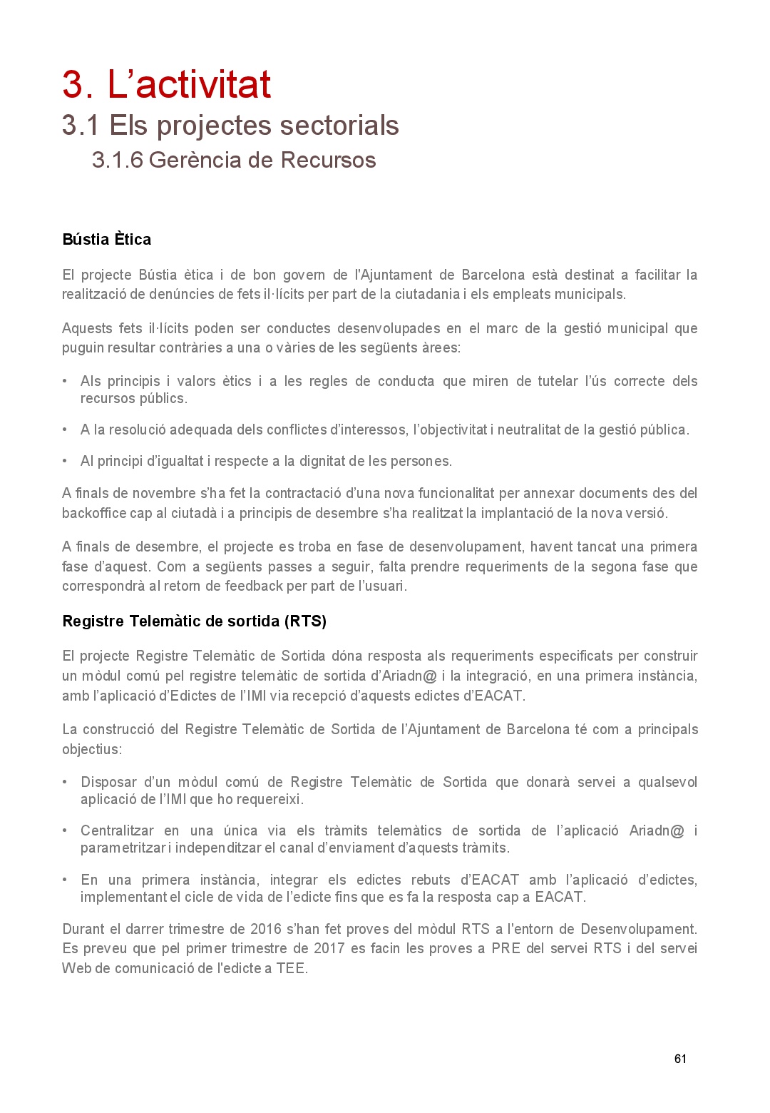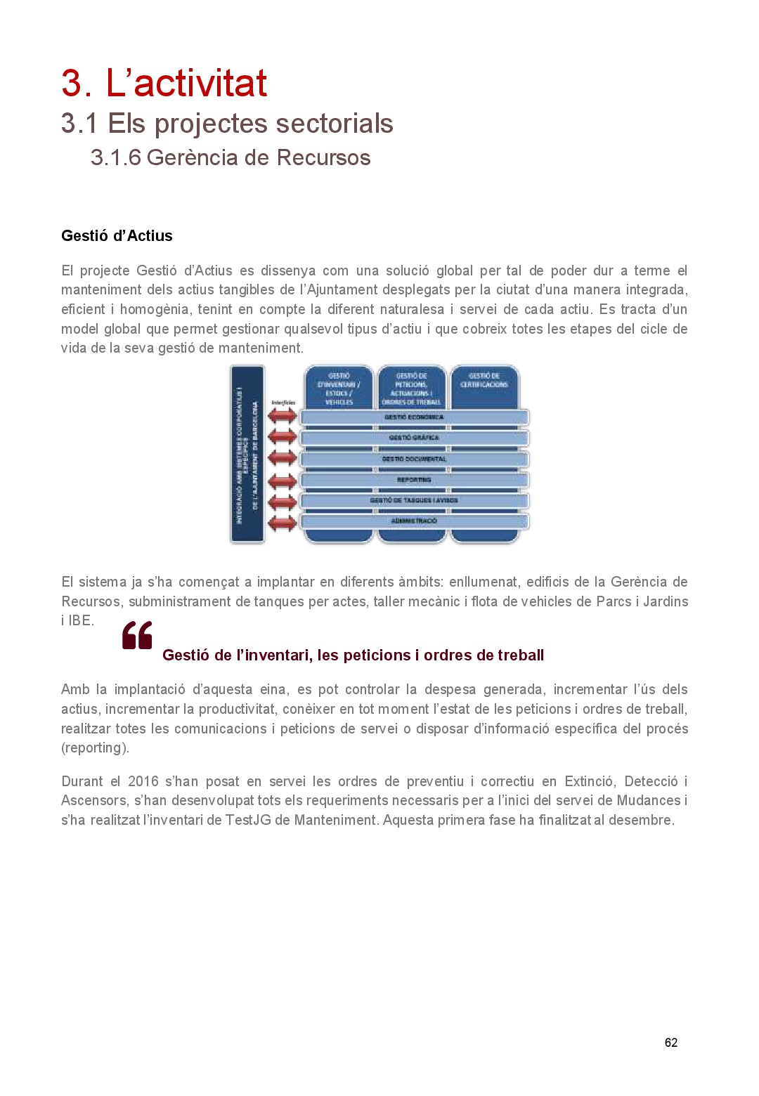 Memòria 2016 Memòria 2016 L'Institut Municipal d'Informatica L'IMI com a principal proveïdor de solucions TIC L'estructura organitzativa La gestió de serveis TIC en dades El pressupost La Transformació Digital de l'Ajuntament El Pla Barcelona Digital 2017 - 2020 El Pla de Transformació Digital 2017 - 2019 L'activitat Els projectes sectorials Gerència Municipal Gerència de Drets de ciutadania, Participació i Transparència Gerència d'Ecologia, Urbanisme i Mobilitat Gerència de Presidència i Economia Gerència de Drets Socials Gerència de Recursos Gerència de Seguretat i Prevenció Cooperació Internacional Esdeveniments i delegacions Projectes europeus Els projectes i serveis transversals de l'IMI Telecomunicacions i Infraestructures Operacions i Seguretat Qualitat i Seguretat Desenvolupament Informació de Base i Cartografia Representació TIC i Reconeixements / 99 Image Image Image Image Image Image Image Image Image Image Image Image