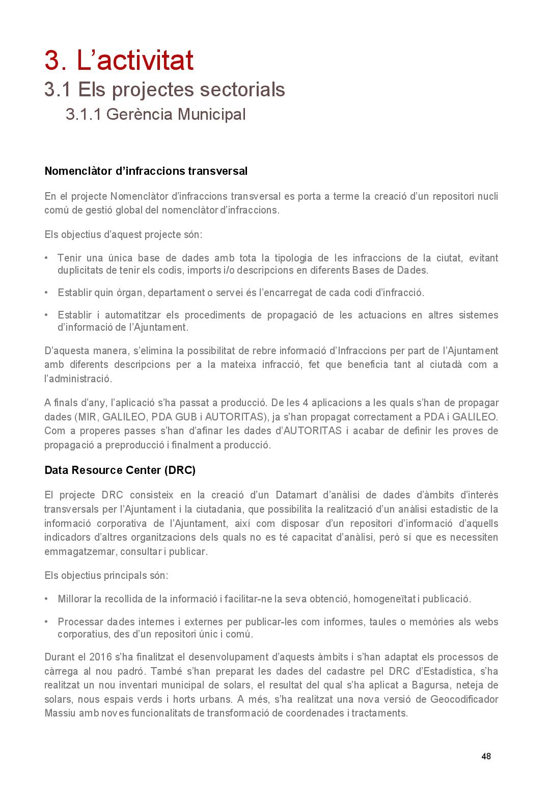 Memòria 2016 Memòria 2016 L'Institut Municipal d'Informatica L'IMI com a principal proveïdor de solucions TIC L'estructura organitzativa La gestió de serveis TIC en dades El pressupost La Transformació Digital de l'Ajuntament El Pla Barcelona Digital 2017 - 2020 El Pla de Transformació Digital 2017 - 2019 L'activitat Els projectes sectorials Gerència Municipal Gerència de Drets de ciutadania, Participació i Transparència Gerència d'Ecologia, Urbanisme i Mobilitat Gerència de Presidència i Economia Gerència de Drets Socials Gerència de Recursos Gerència de Seguretat i Prevenció Cooperació Internacional Esdeveniments i delegacions Projectes europeus Els projectes i serveis transversals de l'IMI Telecomunicacions i Infraestructures Operacions i Seguretat Qualitat i Seguretat Desenvolupament Informació de Base i Cartografia Representació TIC i Reconeixements / 99 Image Image