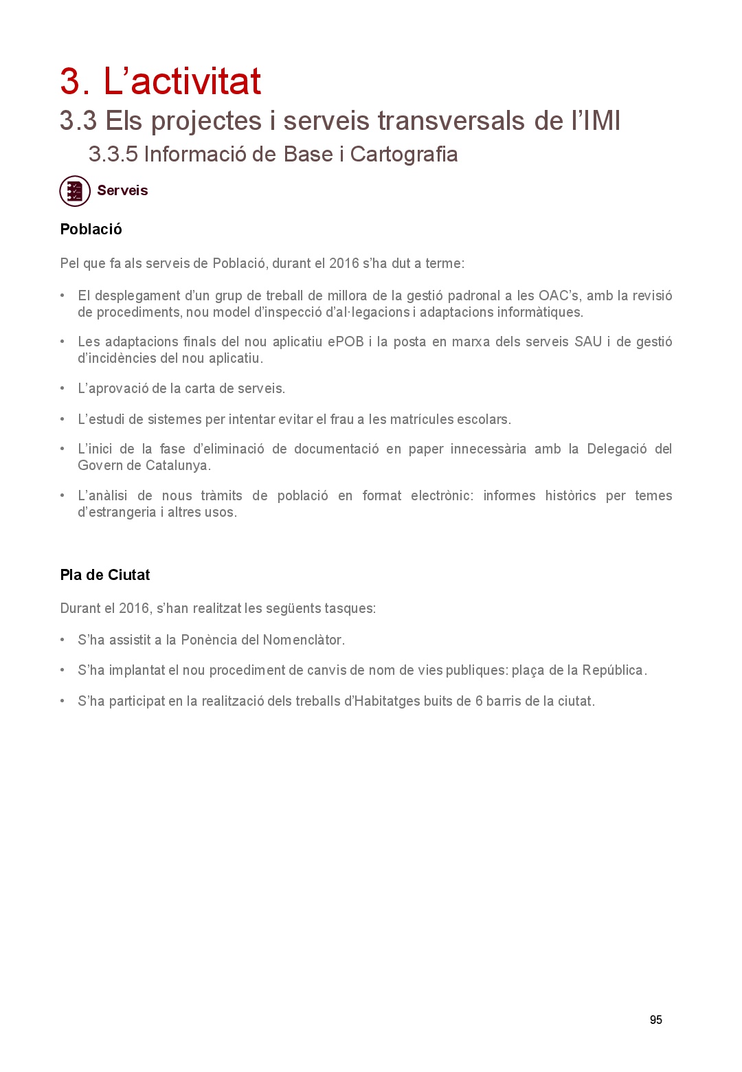 • Els projectes i serveis transversals de l'IMI