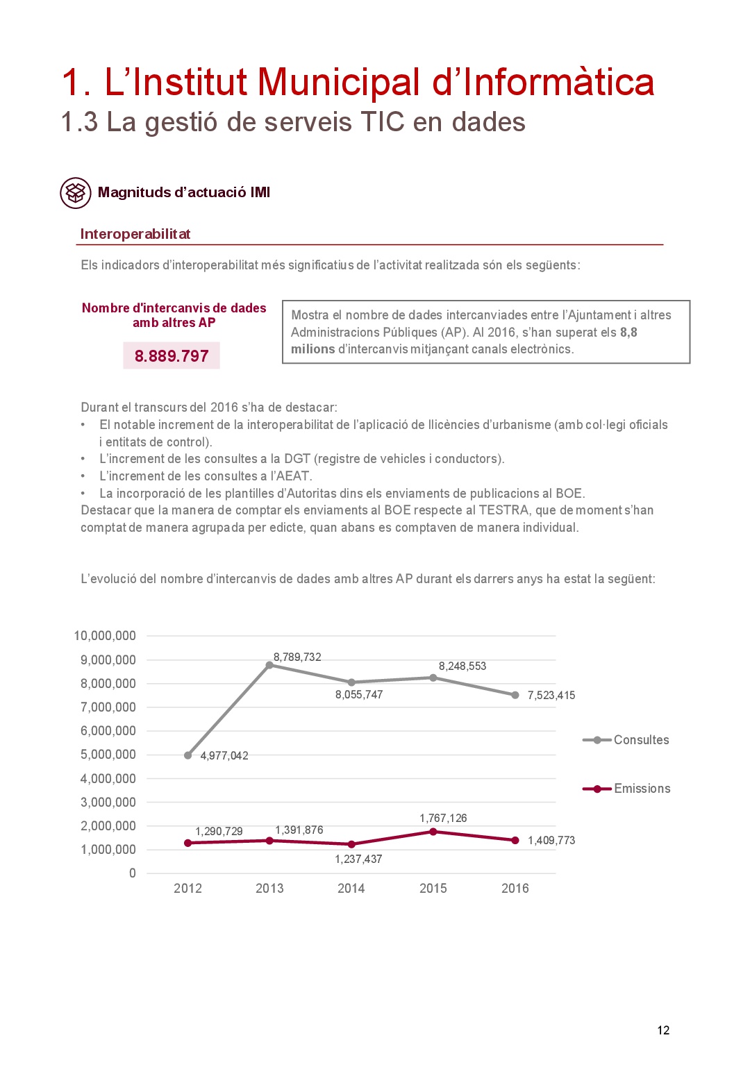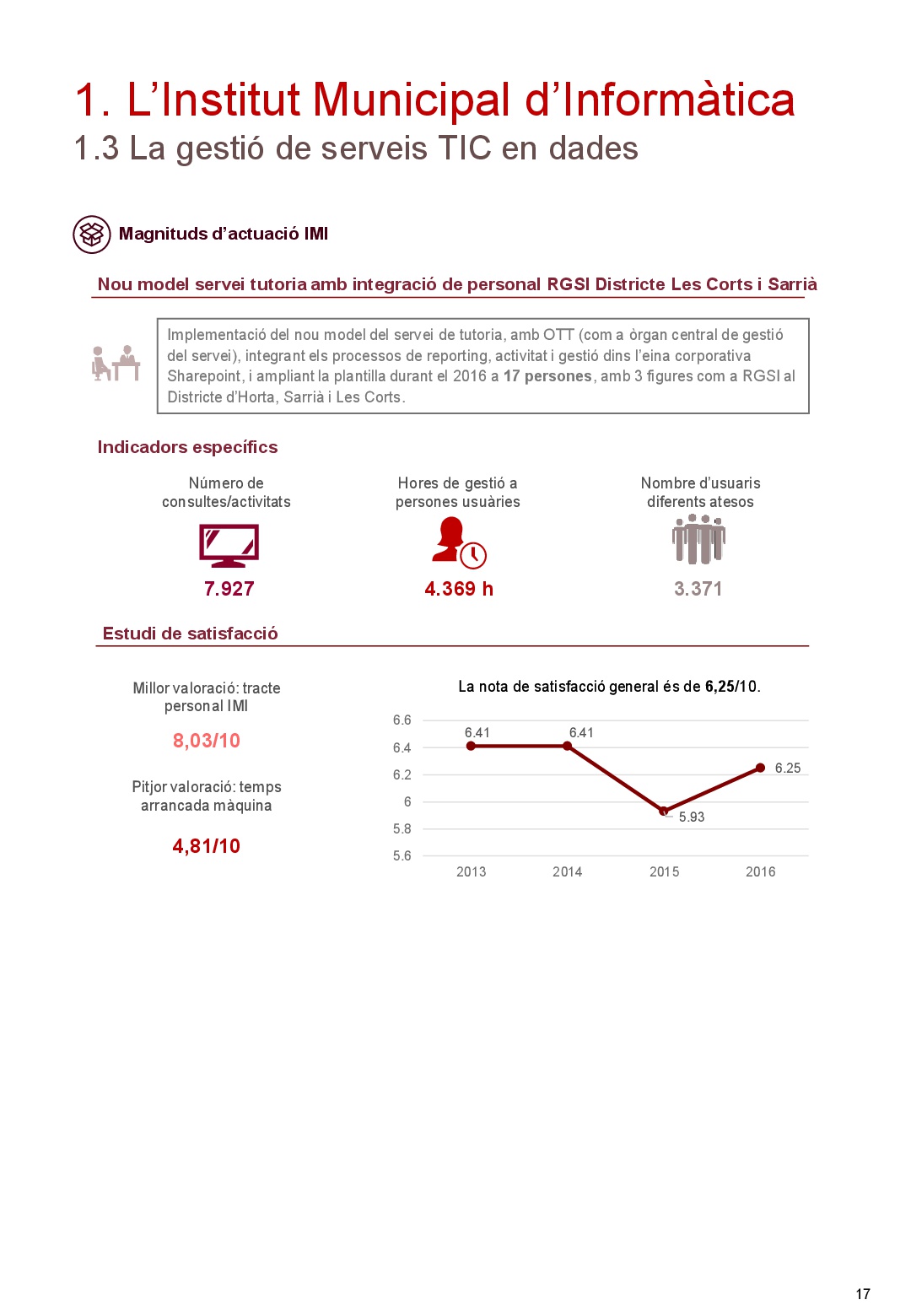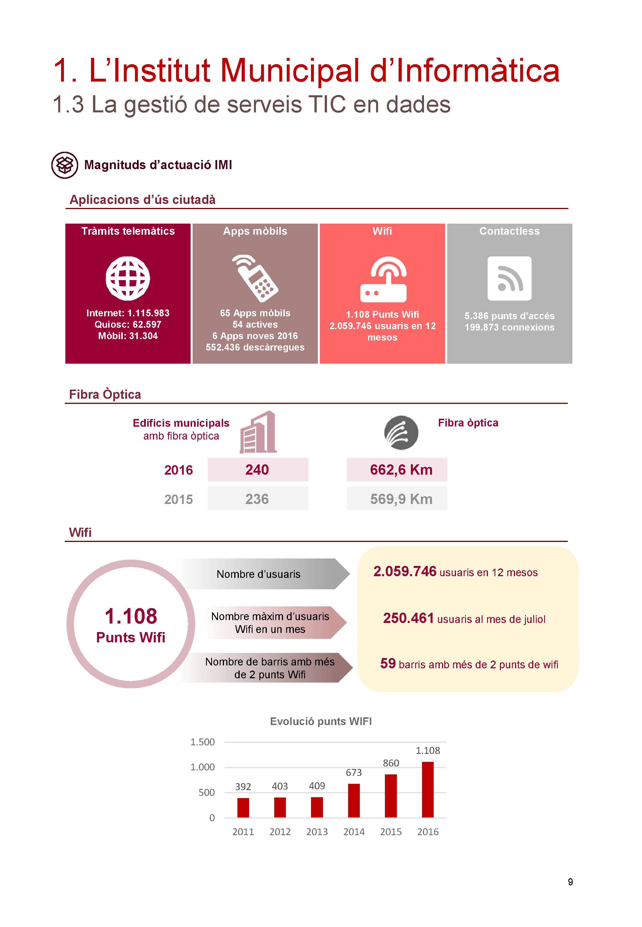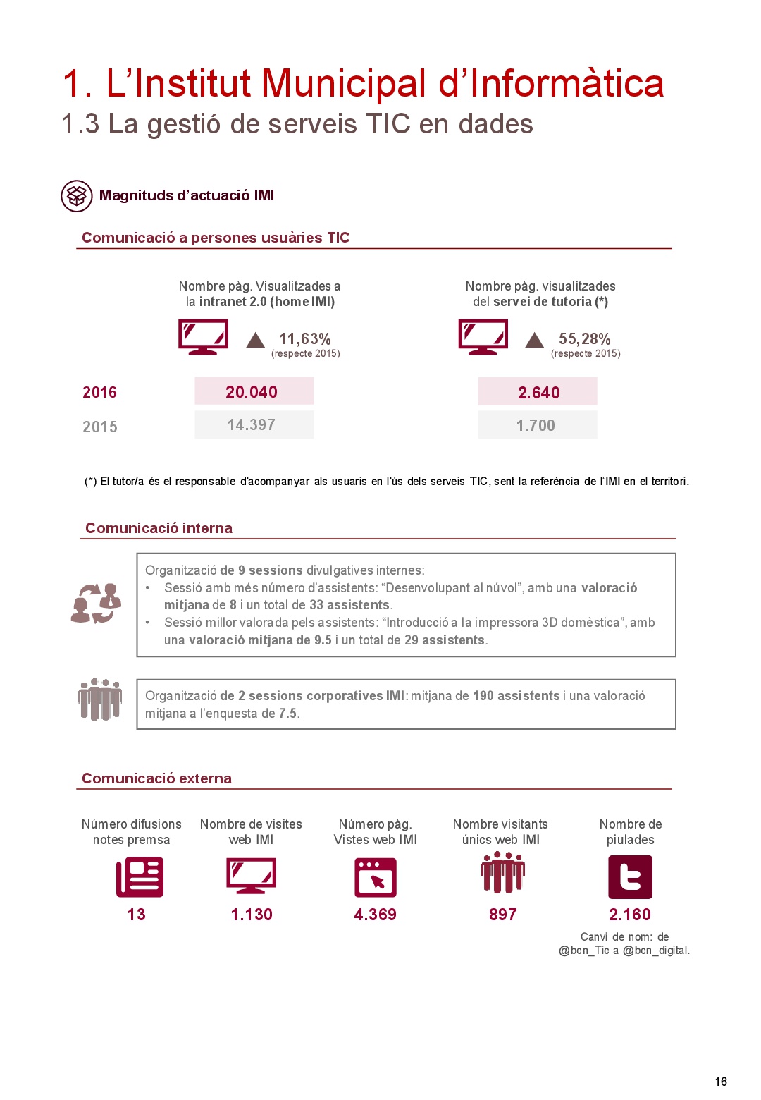 Memòria 2016 Memòria 2016 L'Institut Municipal d'Informatica L'IMI com a principal proveïdor de solucions TIC L'estructura organitzativa La gestió de serveis TIC en dades El pressupost La Transformació Digital de l'Ajuntament El Pla Barcelona Digital 2017 - 2020 El Pla de Transformació Digital 2017 - 2019 L'activitat Els projectes sectorials Gerència Municipal Gerència de Drets de ciutadania, Participació i Transparència Gerència d'Ecologia, Urbanisme i Mobilitat Gerència de Presidència i Economia Gerència de Drets Socials Gerència de Recursos Gerència de Seguretat i Prevenció Cooperació Internacional Esdeveniments i delegacions Projectes europeus Els projectes i serveis transversals de l'IMI Telecomunicacions i Infraestructures Operacions i Seguretat Qualitat i Seguretat Desenvolupament Informació de Base i Cartografia Representació TIC i Reconeixements / 99 Image Image Image Image Image Image Image Image Image Image Image Image Image Image Image Image Image Image Image Image Image Image