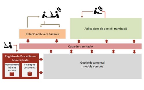 The registration procedures is going to be a digital storage boost with a complete knowledge about all the procedures of the City of Barcelona with citizen involvement, either it is initiated ex officio or by motion of the party. It is going to contain the necessary information to guide the user in their access to the procedures of the City Council. Also it is going to incorporate the information that will allow the internal applications to perform the operations that make up the entire life cycle of a procedure that will end in a record.