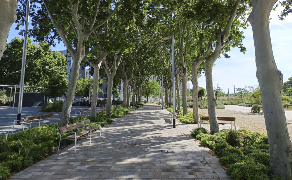 - Mejorar la infraestructura verde y la calidad urbana: incrementar la biomasa, la cobertura y la biodiversidad del arbolado, redefinir las calles como espacios de uso público, crear áreas de juego con criterios de «Ciudad jugable», acondicionar espacios para personas mayores; incrementar el verde y las zonas permeables y utilizar la vegetación y la topografía como aislamiento acústico.