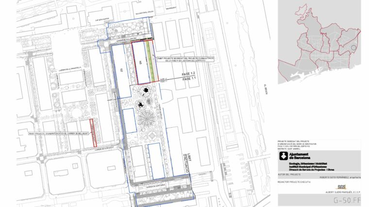 Esta nueva fase de urbanización en el Bon Pastor ha actuado en 1.407 m² de superficie distribuidos en (1.192 m²) alrededor del edificio H3 de la calle Novelles, y 215 m² en el ámbito próximo, ubicado en Bellmunt/Claramunt.