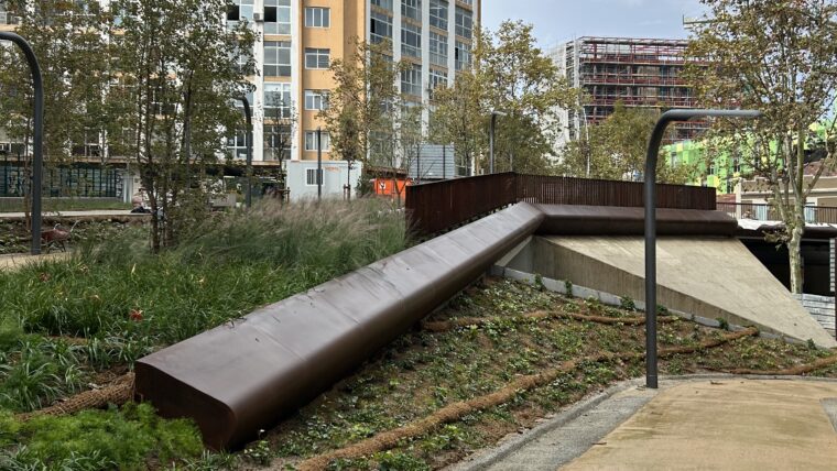 Un trabajo de urbanización que ya ha finalizado y que ha permitido crear un jardín sobre la cubierta de la nueva central de RPRSU (Recogida neumática de residuos sólidos urbanos), que queda escondida bajo la vegetación; creando nuevos itinerarios que conectan la calle Pallars con la calle Zamora, con un recorrido accesible, y dando acceso al nuevo edificio de oficinas.