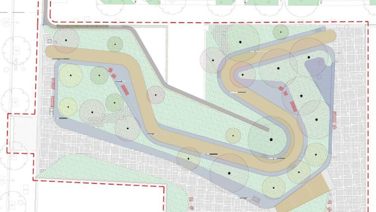 El espacio ‘verde’ también incorpora unos SUDS (Sistemas Urbanos de Drenaje Sostenible) formados por encintados de pavimento permeable a lo largo del camino, límites de gaviones y depósito de gravas, que facilitan la infiltración del agua de lluvia al subsuelo.