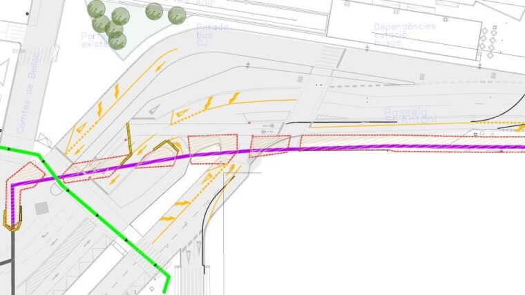 - Reducciones de dos en un carril de los viales de salida de la plaza de Joan Peiró para el bus turístico, los taxis y el resto de vehículos (que tienen que girar a la izquierda).