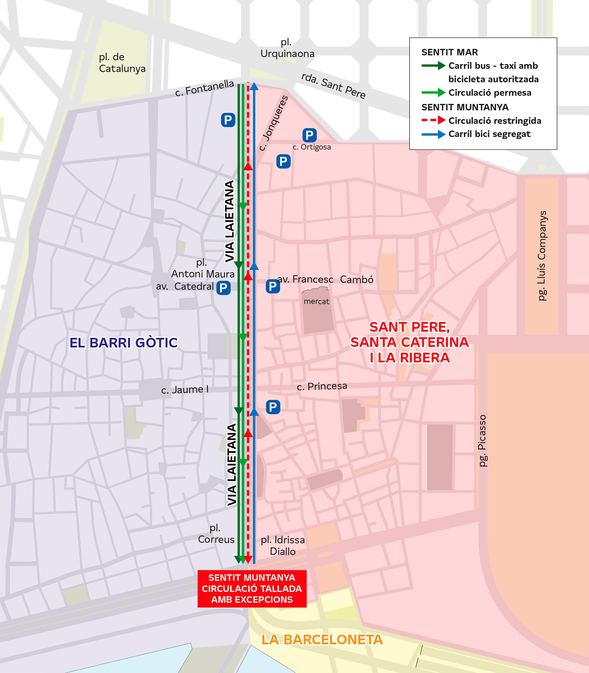 - Aparcaments situats als barris de Sant Pere, Santa Caterina i la Ribera.