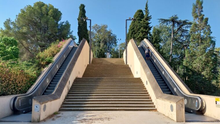 An alternative route is another set of steps located closer to the Joan Maragall gardens, escalators 15 and 16, which start just behind the MNAC building. The new escalators 17 and 18 will begin to be installed on 8 September and will be operational during the week of 6 October.