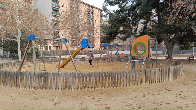 Se crea un recorrido accesible con pavimentos táctiles indicadores para personas con problemas de visión, que conectará los ámbitos destinados a juego dinámico y juego tranquilo. En el primero habrá una tirolina de 15 metros, un columpio compartido (pentacolumpio con sillas para diferentes usuarios), una colina de caucho escalable y un espacio de equilibrios y salto. En la parte más tranquila habrá zonas de estancia con sombra, que permitan el control visual sobre los elementos de juego, y paneles interactivos a la sombra de los árboles. Se mejorará el alumbrado de toda el área de juego y se instalarán bancos de 1, 75 y de 3 m con apoya-brazos y respaldo, y aparcamientos de bicis, entre otros elementos urbanos.