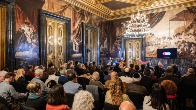 El evento, que ha tenido lugar el 11 de noviembre en el Salón de Crónicas del Ayuntamiento de Barcelona, ha sido presentado por la periodista Rut Martínez y ha contado con la participación de Raquel Gil, concejal de Feminismos, Igualdad y Memoria Democrática, que ha destacado esta fecha como punto de inflexión en la vida de las comunidades judías en Alemania. En su discurso, la concejal ha aprovechado para animar los presentes “a estar vigilantes, a no dejar que el odio se expanda y a no permitir que la violencia vuelva a aflorar”. El acto también ha contado con una conferencia de Vicenç Villatoro, periodista, escritor y ex-parlamentario, titulada “Alemania, la mancha de aceite del antisemitismo”. Villatoro ha hecho un repaso de los mecanismos de expansión y profundización de los discursos de odio antisemitas y ha hablado sobre cómo pueden acabar generando actos violentos de gran magnitud.