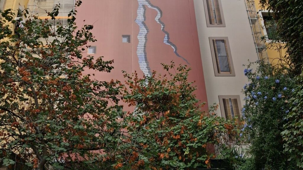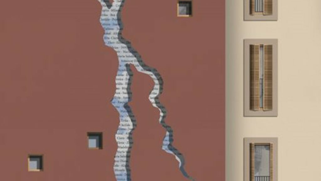 La intervención artística La escletxa recorrerá toda la fachada, será de acero inoxidable y llevará los nombres de las mujeres que han sido víctimas de feminicidios. Representa una denuncia y contra esta violencia y rinde homenaje a las mujeres víctimas, una propuesta de Illium collective, que ganó el concurso de intervención artística urbana organizado por la Plataforma Unitaria contra las violencias de género. La conceptualización de la violencia hacia las mujeres se centra en forma de grieta simboliza la herida profunda de una realidad que conmueve a nuestra sociedad. Mientras se realizan las obras se ha instalado una lona en la fachada réplica de la futura obra de arte.