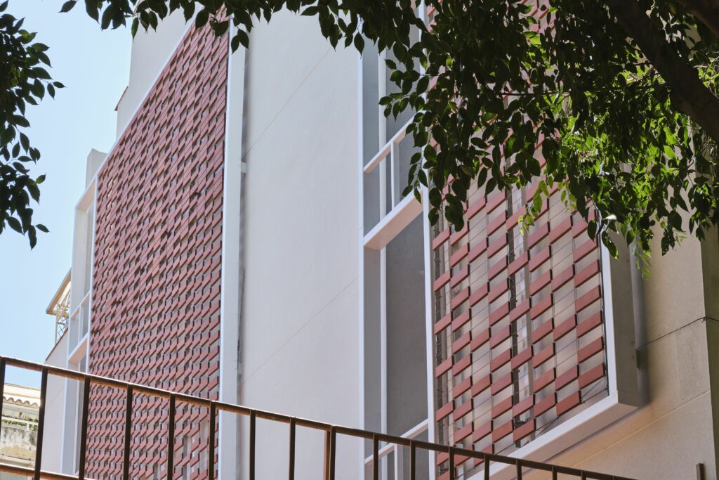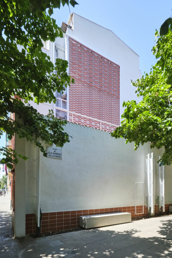 Se trata de una intervención de sutura urbana de dos medianeras consolidadas, con la integración paisajística de las mismas y en la que se refuerza la historia urbanística y evolutiva del barrio del Buen Pastor, con una reflexión sobre las fases históricas del barrio. La propuesta se ha trabajado juntamente con los vecinos de las fincas afectadas, la AAVV del Buen Pastor y el Distrito.