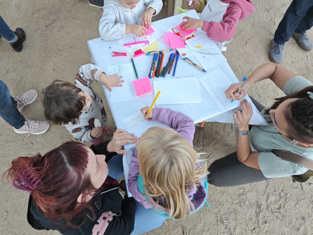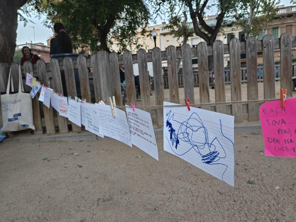 El passat 28 d’octubre a la tarda es va organitzar un taller participatiu a la plaça de les Palmeres destinat, per una banda, a infants i les seves famílies i, per l’altra, a veïns i veïnes en general. L’objectiu era recollir la informació de les persones que l’utilitzen, quines són les seves necessitats i propostes, com a punt de partida de l’avantprojecte de remodelació i millora integral de la plaça.