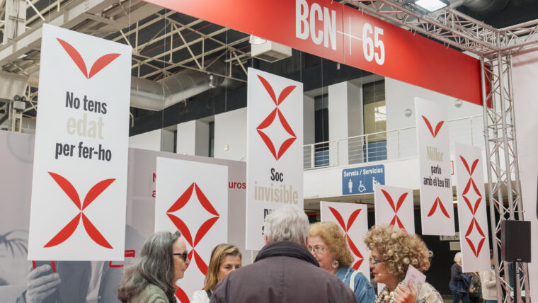 Estand de l'Ajuntament de Barcelona a Firagran, enguany dedicat a combatre l'edatisme, amb les il·lustracions de la Dominga com a fil conductor