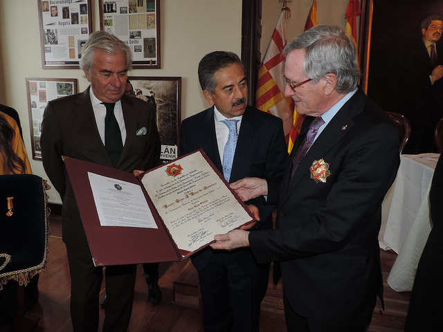 L’Alcalde Xavier Trias ha rebut aquest matí la medalla “Orden de la democracia Simón Bolívar”, en grau de Gran Oficial, atorgada pel Congrés de la República de Colòmbia. La medalla ha estat lliurada per Joaquín Camelo, president de la Comissió de Pau del Congrés de Colòmbia. Xavier Trias ha rebut aquest honor civil en un acte a la Cámara de Representantes, a Bogotà, on han assistit també el Tinent d’Alcalde d’Habitat Urbà, Antoni Vives, l’ambaixador d’Espanya a Colòmbia, Ramon Gandarias, i la comunitat catalana instal·lada a la capital colombiana.