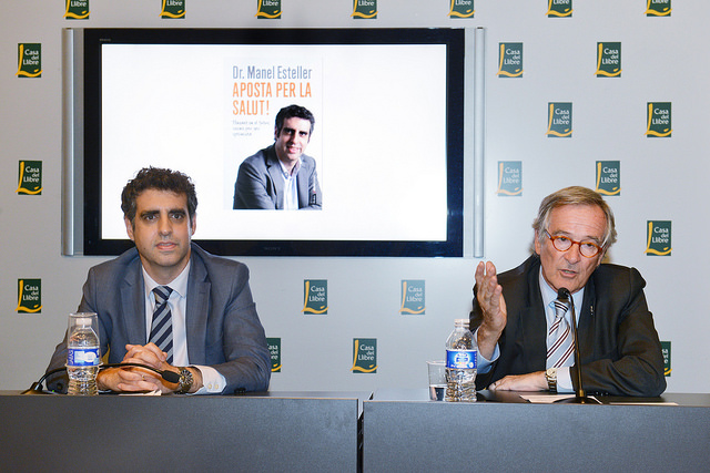 L’alcalde de Barcelona, Xavier Trias, ha participat aquesta tarda a la presentació del llibre del doctor Manel Esteller, titulat “Aposta per la salut!” i publicat per Dèria editors, que se centra en la promoció de la salut individual i col·lectiva, fent especial èmfasi a l’educació i la recerca. L’obra explica la trajectòria personal, acadèmica i professional del Dr. Esteller, i la clara vocació que sentia per estudiar medicina, però no per tractar malalts, sinó per investigar les causes de les malalties i pensar nous tractaments que poguessin curar-les en un futur. L’autor fa una clara defensa de la inversió en recerca i en formació perquè generen benestar, coneixement i activitat econòmica. Manel Esteller va néixer a Sant Boi l’any 1968. Es va llicenciar en Medicina a la Universitat de Barcelona i després va obtenir el seu doctorat especialitzat en genètica molecular del carcinoma de l’endometri. Actualment és director del Programa d’epigenètica i biologia del càncer de l’IDIBELL. També és professor de genètica de la Universitat de Barcelona.