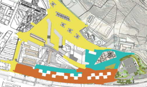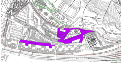 En aquest plànol es pot veure les zones ja urbanitzades (groc) , les obres en curs (marró) que acabaran aquest estiu a la façana Meridiana del barri, i les que ara comencen (verd).