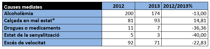 En aquest sentit, l’informe anual de la Unitat d’Accidents de la Guàrdia Urbana analitza les causes indirectes o mediates dels sinistres, és a dir aquelles causes que contribueixen a que es materialitzi l’accident sense ésser la causa principals. L’any passat l’excés de velocitat a la ciutat va ser la tercera causa indirecta d’accident a la ciutat, per darrera de l’alcoholèmia i la calçada en mal estat.