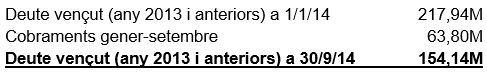 La reducció del deute durant aquest any 2014 ha seguit la següent evolució: