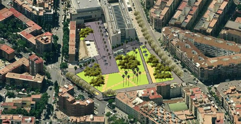 Amb aquestes actuacions es comunicaran la plaça central Carmen Laforet amb l’avinguda de Borbó i els carrers de Costa Cuixart i Felip II. S’enjardinaran els talussos amb l’objectiu de formar un espai verd que es pugui trepitjar, situant l’arbrat al voltant de la plaça Carmen Laforet. A més, es col•locarà mobiliari i enllumenat, d’acord amb els criteris d’estalvi i energètic i rendibilitat. També s’executarà el sistema de drenatge i xarxa de reg.