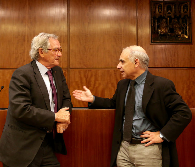 L’alcalde de Barcelona, Xavier Trias, i el degà del COAC, Lluís Comerón